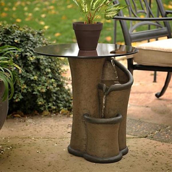 Contemporary outdoor water fountain, that can be a table. It’s a creative design of small furniture. An outdoor furniture, that can be a table for your gazebo, or patio furniture. It’s designed with water features. So, this table looks natural, and you get a natural atmosphere, with the sound of the water drop down from the top of this table. Its base is composed of three cylinders of reddish-brown, which create a natural fall and fill your garden with the soothing sounds of cascading water. The upper is made of glass and provides extra space for drinks, some candles and decorative objects. The fountain is crafted from durable resin with a stone cladding painted by hand. It can survive outside of a house for a long time in silence and recycles water from hidden reservoir. This creative outdoor water fountain and table can be take to your home with just $199. This Avalon Outdoor Water Fountain designed by Grandin Road, very stylish and simple, but you get your natural outdoor atmosphere with practical furniture.