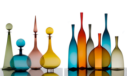 These beautiful mouth-blown glass decanters and vases are the product of an artist who is among the top individuals in his craft. Joe Cariati uses a Venetian off-hand method of glass blowing to create these simple and contemporary works of transparent art.
